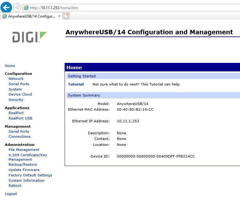 Se agrego el dispositivo AnyWhereUSB para instalar los dongles